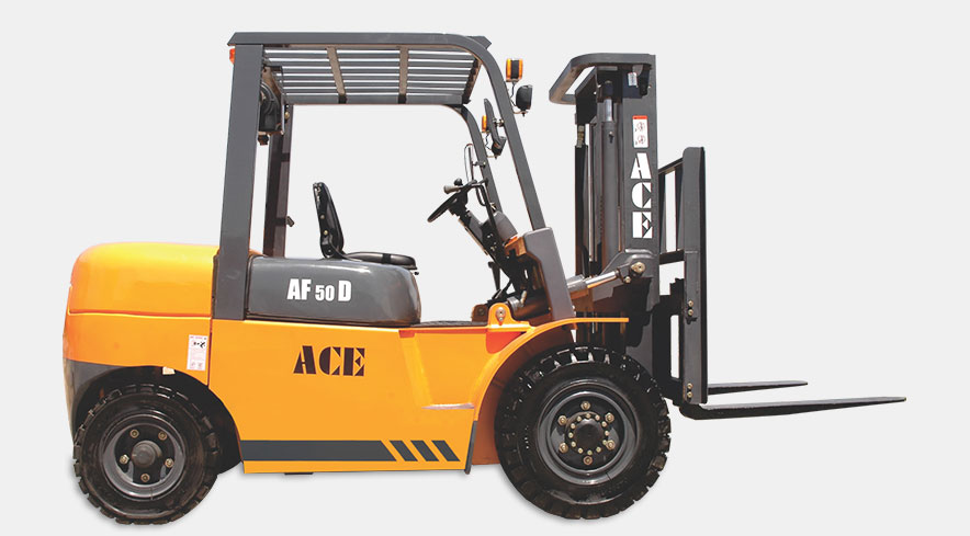 La carretilla elevadora ACE AF 50D es una carretilla industrial motorizada que se utiliza para levantar, desplazar y apilar material. La empresa fabrica carretillas elevadoras diésel con una capacidad de elevación de 5 toneladas.