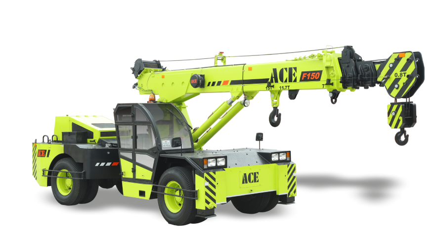 ACE fabrica la grúa Pick-n-Carry NextGen F150 de 15 toneladas 4WD, que se utiliza ampliamente en la industria de ingeniería, construcción e infraestructura. La grúa farana ACE F150 se utiliza para cargar, descargar, mover, desplazar y montar material.