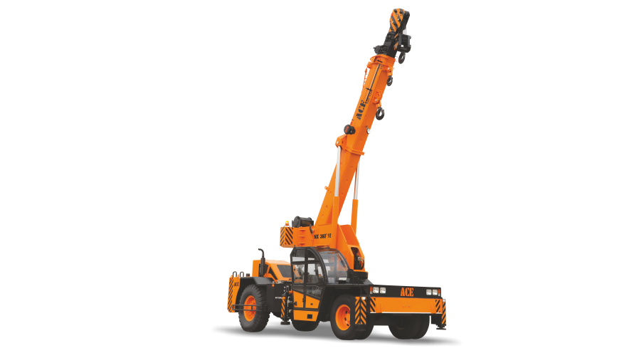 ACE fabrica la grúa NX 360° 15 toneladas 4WD NextGen Multi Activity 360° Full Slew cum Pick 'N' Carry que se usa ampliamente en la industria de ingeniería, construcción e infraestructura para cargar, descargar, mover, desplazar y levantar material.